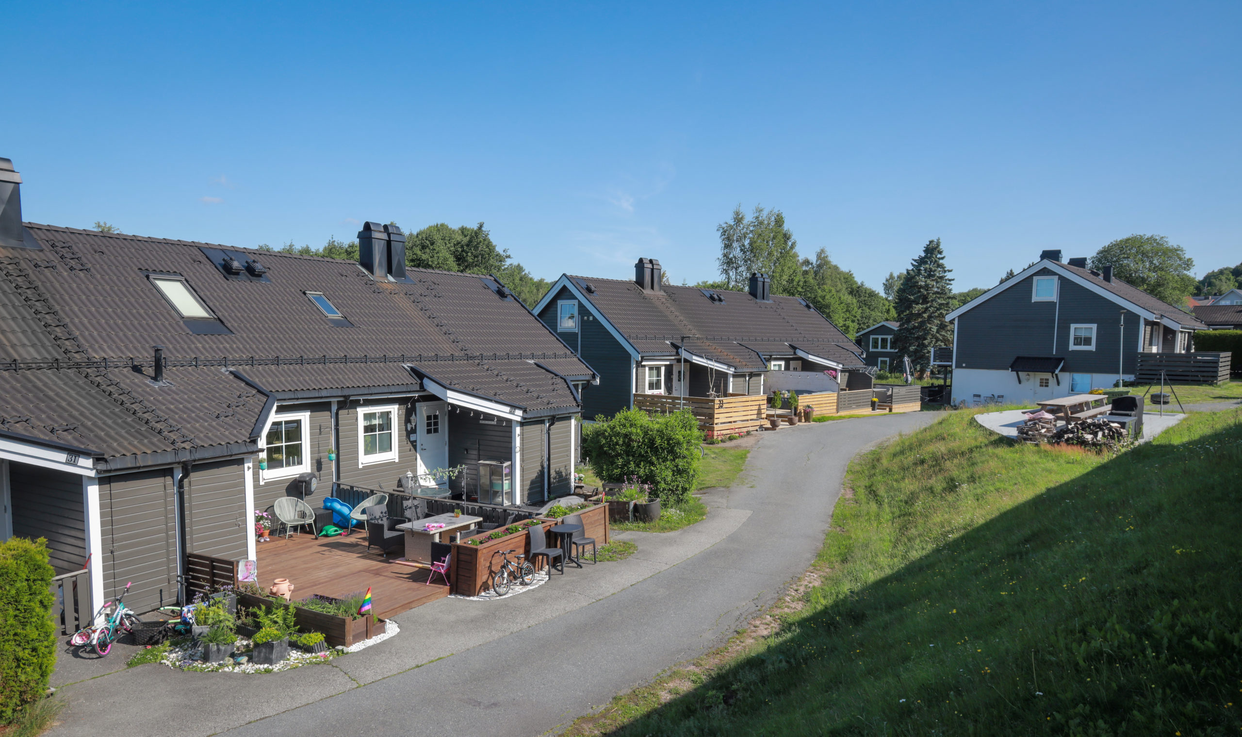 Hos oss står fellesskap og godt naboskap sterkt. Alle boenheter har egen garasje, og felles lekeplasser gir trygge og sosiale møteplasser for både små og store. Vi er stolte av å være et nabolag hvor folk trives, og hvor det er lett å føle seg hjemme.